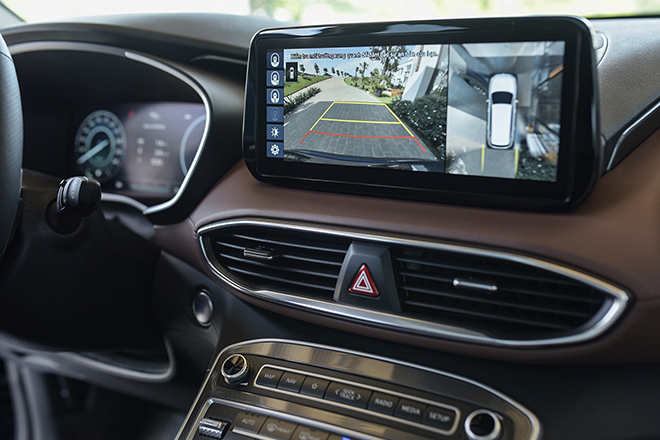 Điểm nhấn nổi bật bên trong Hyundai Santa Fe 2022 là màn hình cảm ứng trung tâm được nâng cấp từ 8 inch lên 10,25 inch, thiết kế dạng mới, tương thích Android Auto/Apple Carplay, bản đồ định vị dẫn đường vệ tinh dành riêng cho thị trường Việt Nam.