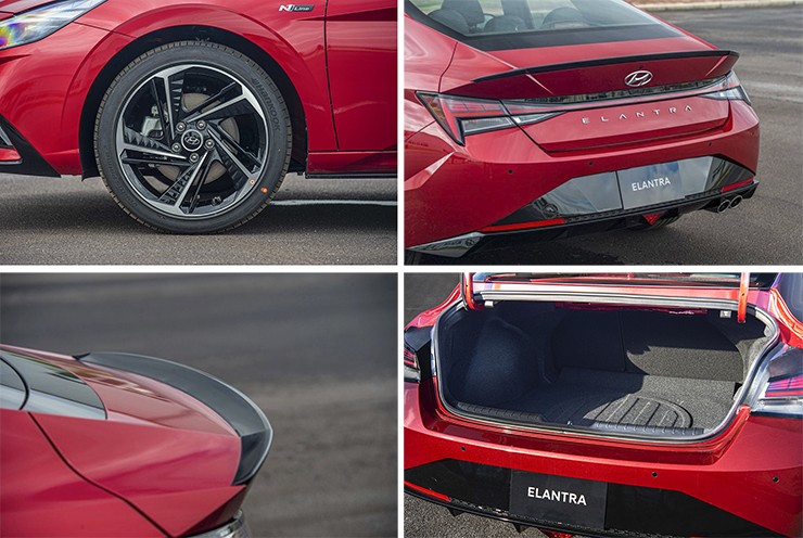 Đèn định vị dạng LED hiện đại hơn. Cản sau thiết kế các cánh khuếch tán gió vừa có tác dụng gia tăng tính thẩm mỹ vừa tăng tính khí động học cho xe. Dòng chữ ELANTRA mạ crom sáng bóng ở vị trí chính giữa cũng là điểm đáng chú ý trên mẫu sedan C mới của Hyundai.